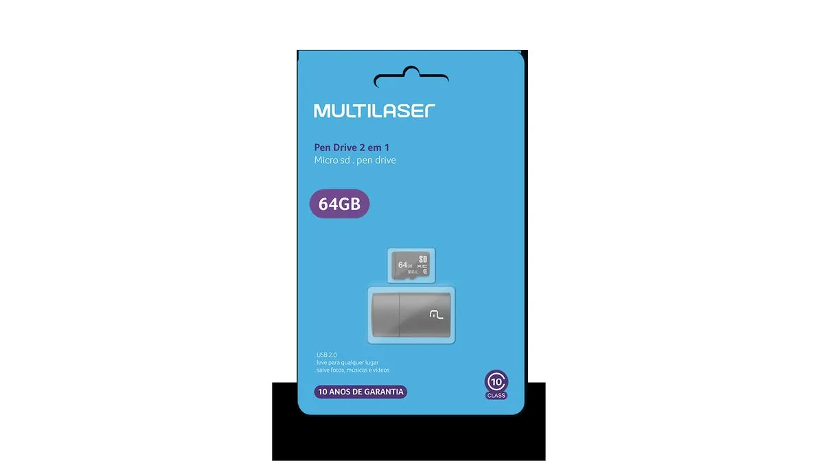 Experimente a praticidade do Pen Drive 2 em 1 Leitor USB + Cartão de Memória Classe 10 64GB Multi - MC164 e organize sua vida digital de forma eficiente. Ideal para quem precisa de um armazenamento prático e confiável, seja para uso pessoal ou profissional.